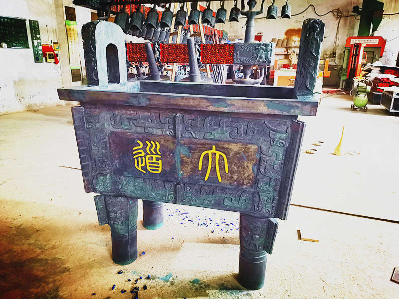 古編鐘精密鑄造廠員工正在給司母戊鼎刻字并做舊